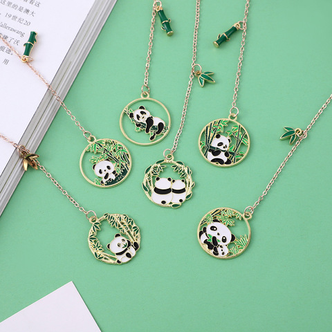 علامة مرجعية صغيرة محمولة للطلاب من الكرتون الطازج ، قلادة مشبك صفحة باندا جديدة مع مادة معدنية