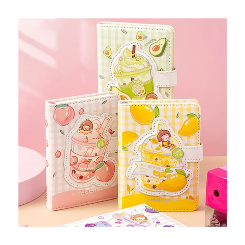 Peach PU Leather Magnetic Buckle Student Colorful Pages Diary Notepad Planner Notebook 2944
