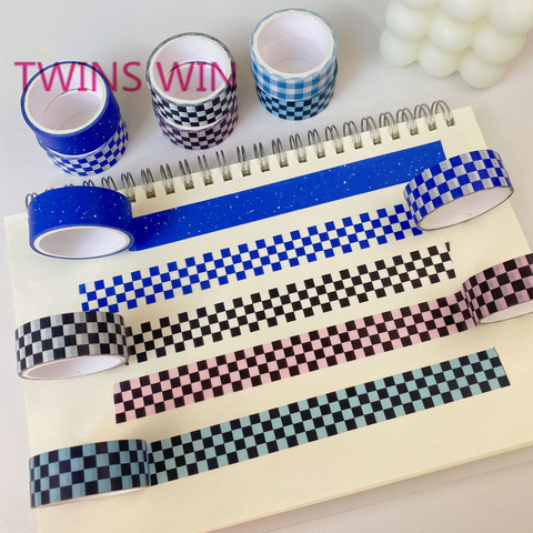 塩ステッカーで飾られた韓国のインスタイルのチェッカーボードと紙テープDIY手作り日記コラージュ接着剤1075