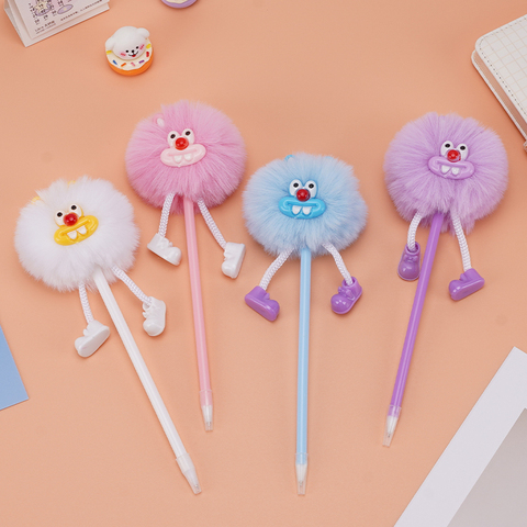 התאמה אישית צבע יצירתי עיצוב קריקטורה חמוד ג 'ל דיו יפה pom-pom ג' ל עטים בתפזורת עבור בית הספר