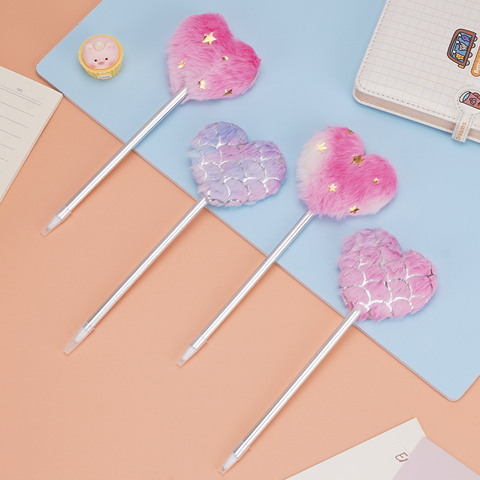 התאמה אישית צבע עיצוב יצירתי צורה לב pom-pom ג 'ל דיו יפה עטים בתפזורת עבור בית הספר