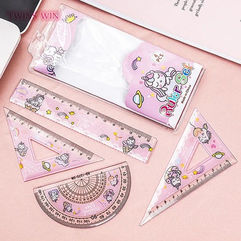 4 Stuk Schattige Cartoon Plastic Driehoek Plaat Gradenboog Liniaal Set Eenhoorn Liniaal Voor Student
