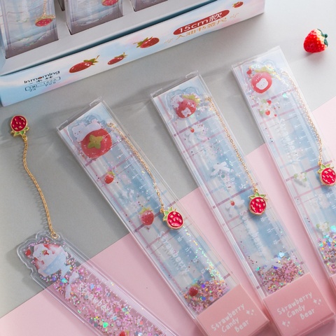 Hoge Dimensionale Nauwkeurigheid 15Cm Creatieve Aardbei Beer Tekening Liniaal Schattige Cartoon Liniaal Voor Cadeau