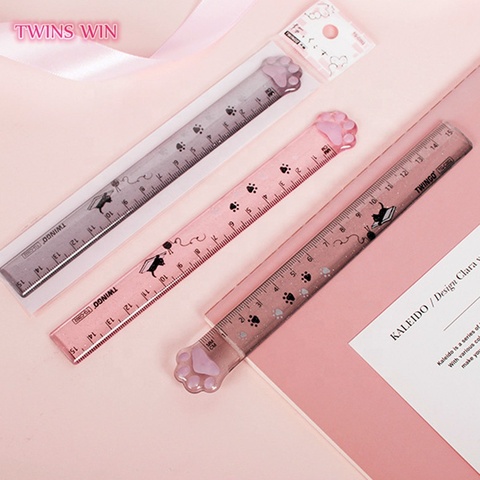 15 Cm Kawaii Kat Klauw Glitter Transparante Plastic Liniaal Uniek Ontwerp Draagbare Liniaal Voor School